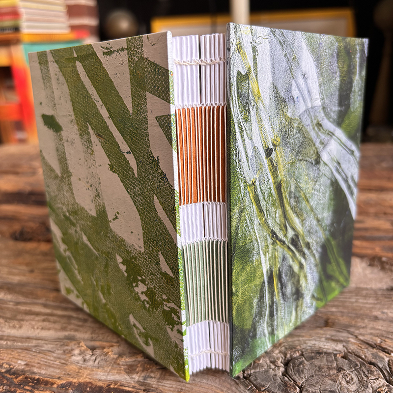 e bond teaches art workshops & creates fabric collections by day, makes handmade books by night, hangs out with trees on weekends and writes something close to poems in the spaces between. Under the studio name roughdrAftbooks—created in 2003—she makes one-of-a-kind artists books, printed pieces and abstract drawings that merge and blur the boundaries of art, craft, surface design and poetry.