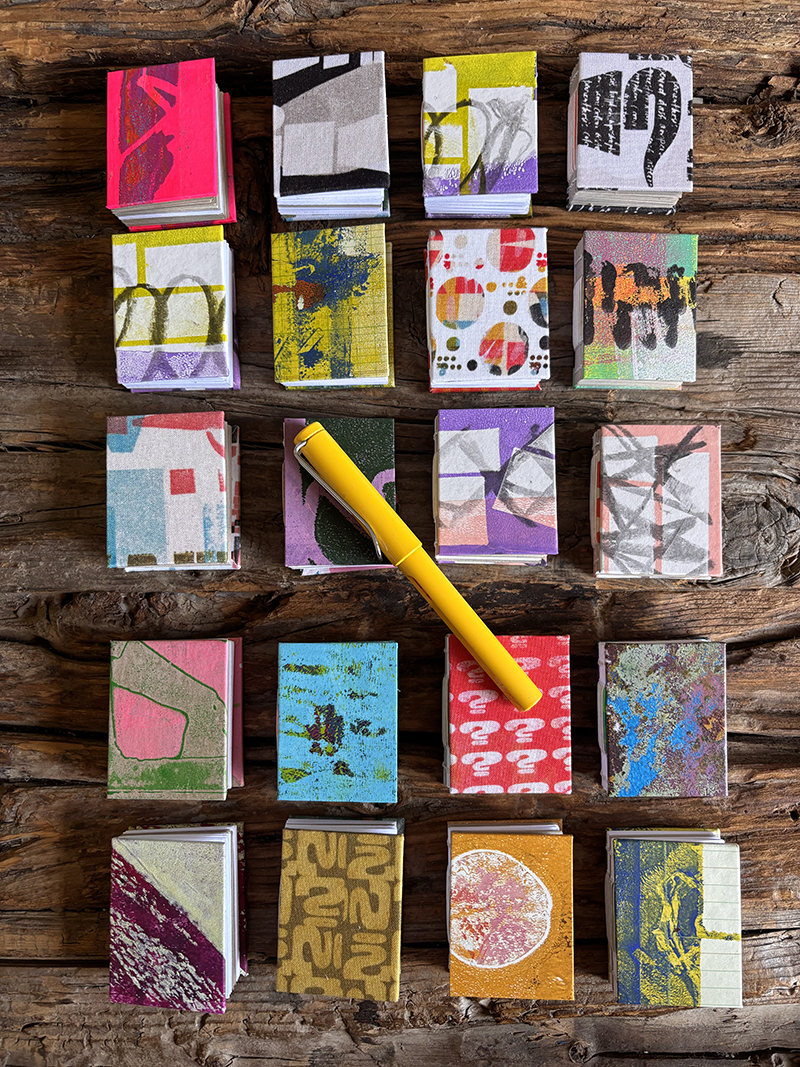 e holds a BFA in graphic design and art history from Moore College of Art & Design and an MFA in Creative Writing and Book Art from Mills College. Her work is held in library collections across the US and has been published in Uppercase Magazine, Berkeley Poetry Review, 500 Handmade Books, as well as numerous books (about books). Most recently, e’s work has moved into the wonderful world of surface design where she has designed many colorful, abstract fabric collections in collaboration with Free Spirit Fabrics