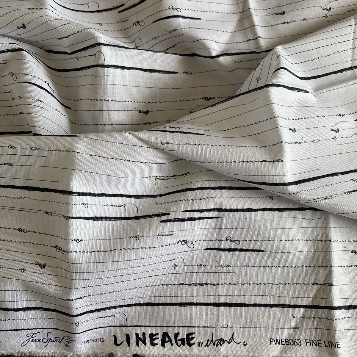 LINEAGE is the collection that arrived after spending a summer making lines and playing around with the question, ‘When does a line become a stripe?’ The patterns that resulted from those explorations became a diverse compilation of drawings and collages, reveling in the beauty of a line, whether it be simple or complex. Then, thinking about the infinite ways those individual lines could evolve into stripes. During the making of the collection, I came to appreciate that one line alone can’t be a good stripe. Stripes by their very nature are pieces gathered, like families, standing side by side, making and taking up space together in a community. This collection is also a promise fulfilled to my cousin Sarah, an amazing quilter and the ultimate lover of stripes. Years ago, she asked me to create a stripe pattern, and from that one ask LINEAGE was born. To Sarah and stripe lovers everywhere, this is for you.