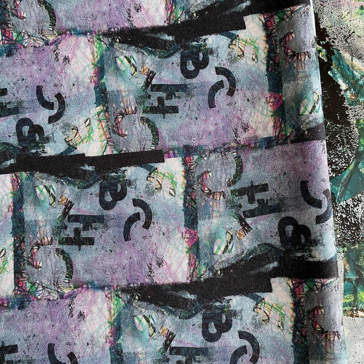 Working on RAVEL was an amazing opportunity to continue my visual exploration into shapes. For this collection, I focused on the modern Roman alphabet (aka the 26 letterforms from A—Z ) as the primary shapes I wanted to work with. RAVEL became a collection of prints about these shapes coming together and falling apart. While creating, my main questions circled around a.) How can I break letters apart into new, interesting forms and also b.) Is it possible to obscure these already imbued symbols so much that they ‘lose’ their meaning? The letterforms in RAVEL run the gamut from being clear & legible to fractured, to finally some forms completely disintegrating into their environments.