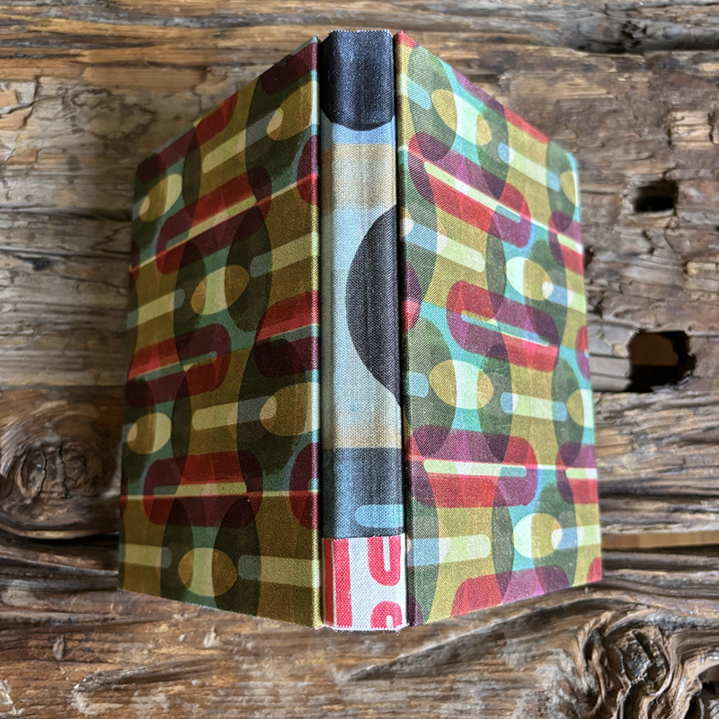 This book was machine sewn, and has 144 LINED pages and was covered with the fabric pattern, Orbit/Faith.