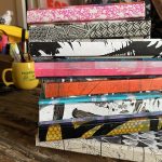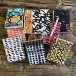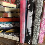 This book was machine sewn, and has 144 LINED pages. The journals are covered with fabric from my first collection in collaboration with Free Spirit Fabrics.