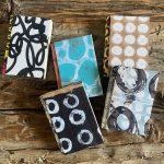 This book was machine sewn, and has 144 BLANK pages. The journals are covered with fabric from my first collection in collaboration with Free Spirit Fabrics. The spine is covered with the pattern Octavia from the same collection.