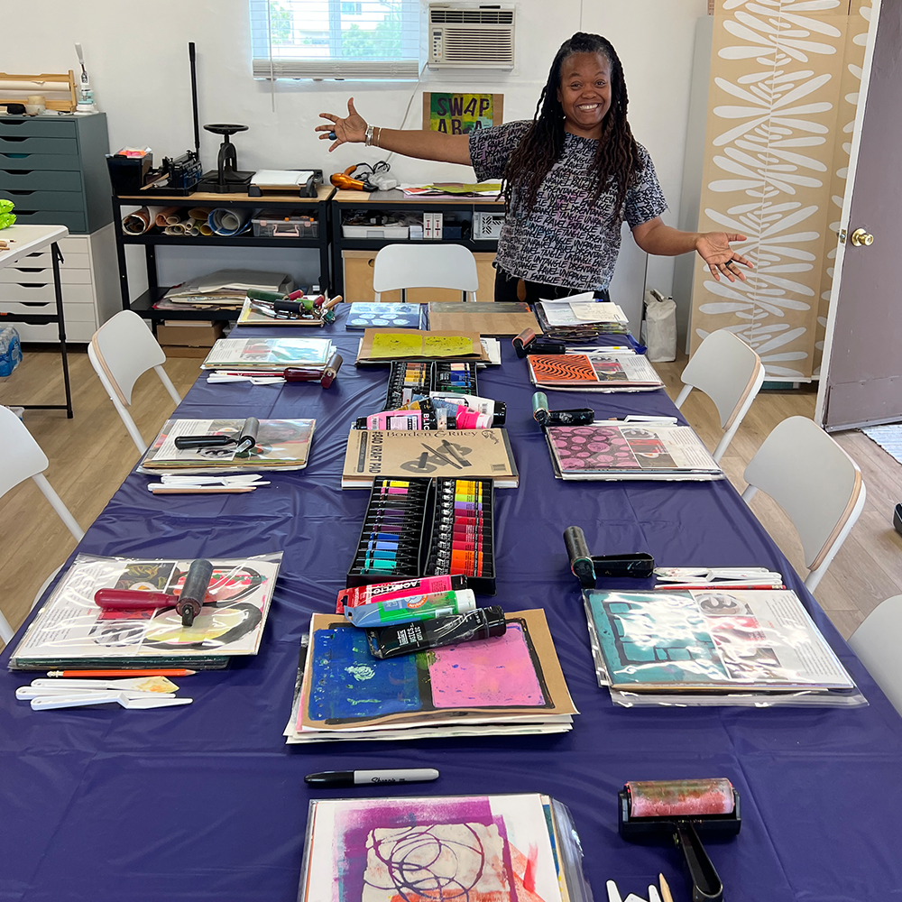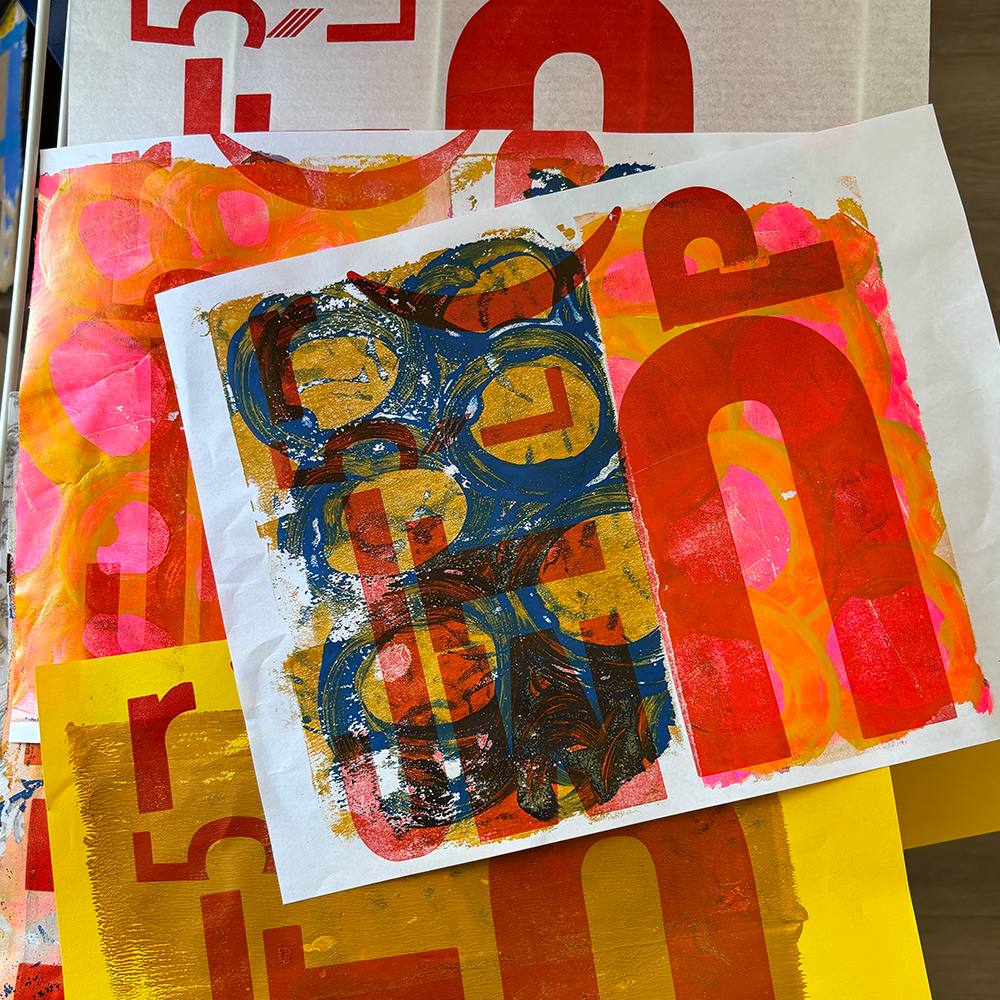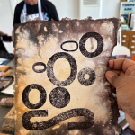 We begin by arriving—not just in the space, but in our senses. e and Jenn will share glimpses into their processes and philosophies, opening up space for you to discover your singular rhythm of mark-making. We’ll use gel plates, ink, and paint, along with stencils and stamping to make monoprints and patterns that explore how repetition, resistance, and residue shape both paper and practice. This is a day for exploration. No need for precision. Just presence, curiosity, and a willingness to see what shows up.