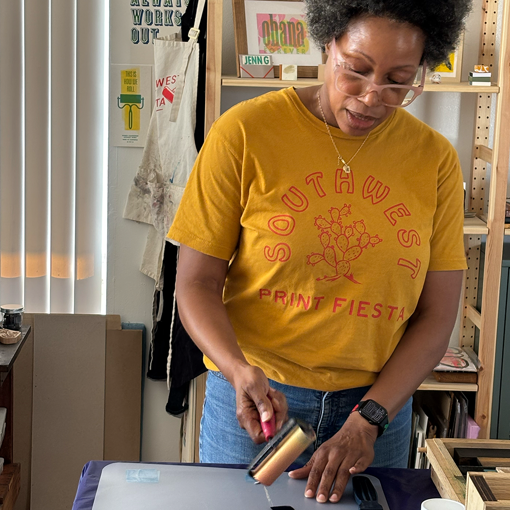 Jennifer Graves (aka Jenn) is a letterpress printer and book artist based in Los Angeles, California. Prior to her decision to pursue art, Jenn taught and worked in the public school and library systems. Since taking her first letterpress class she has spent years growing, refining her own skills, teaching, and learning from others.