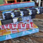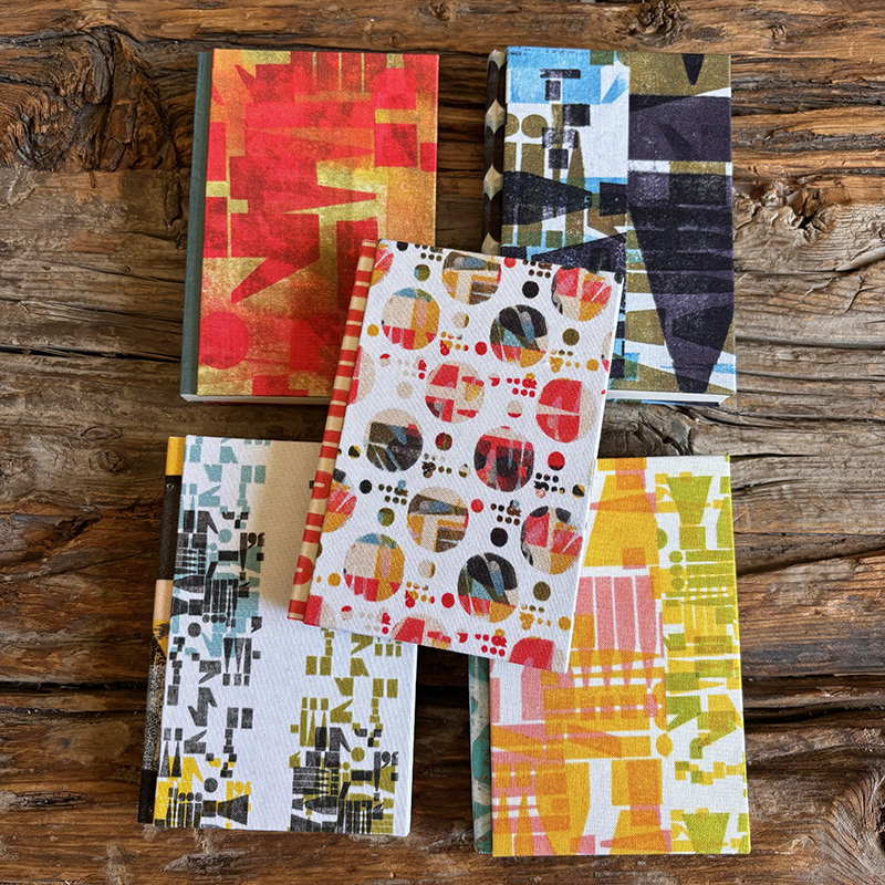 The journals are covered with fabric from my fifth collection in collaboration with Free Spirit Fabrics.