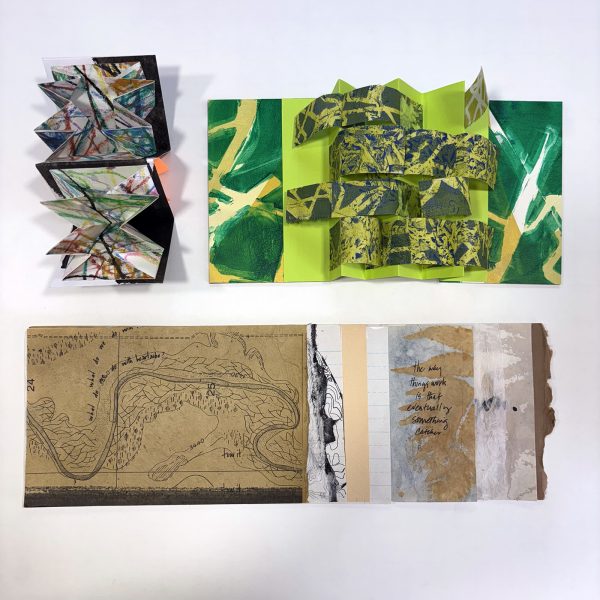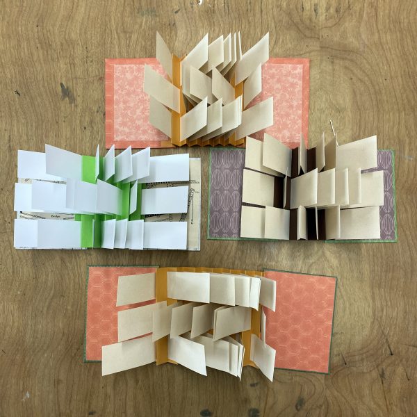 This workshop is for the adventurous book artist interested in exploring book forms that are less traditional and more sculptural in nature. Because each of these bindings work with single sheets of paper – as opposed to folded stacks – these structures are surprisingly simple to create & allow for many kinds of content. In the workshop you’ll learn three different bindings by making mockups using blank or already decorated papers. (Feel free to bring materials to use if you have a great idea already brewing.) This is a ‘form’ class, meaning we will concentrate mostly on learning how to craft these three structures, as opposed to focusing on what the content of the form will contain. You’ll leave with three samples plus the knowledge to be able to take the structures and expand upon it in your own practice in the future.