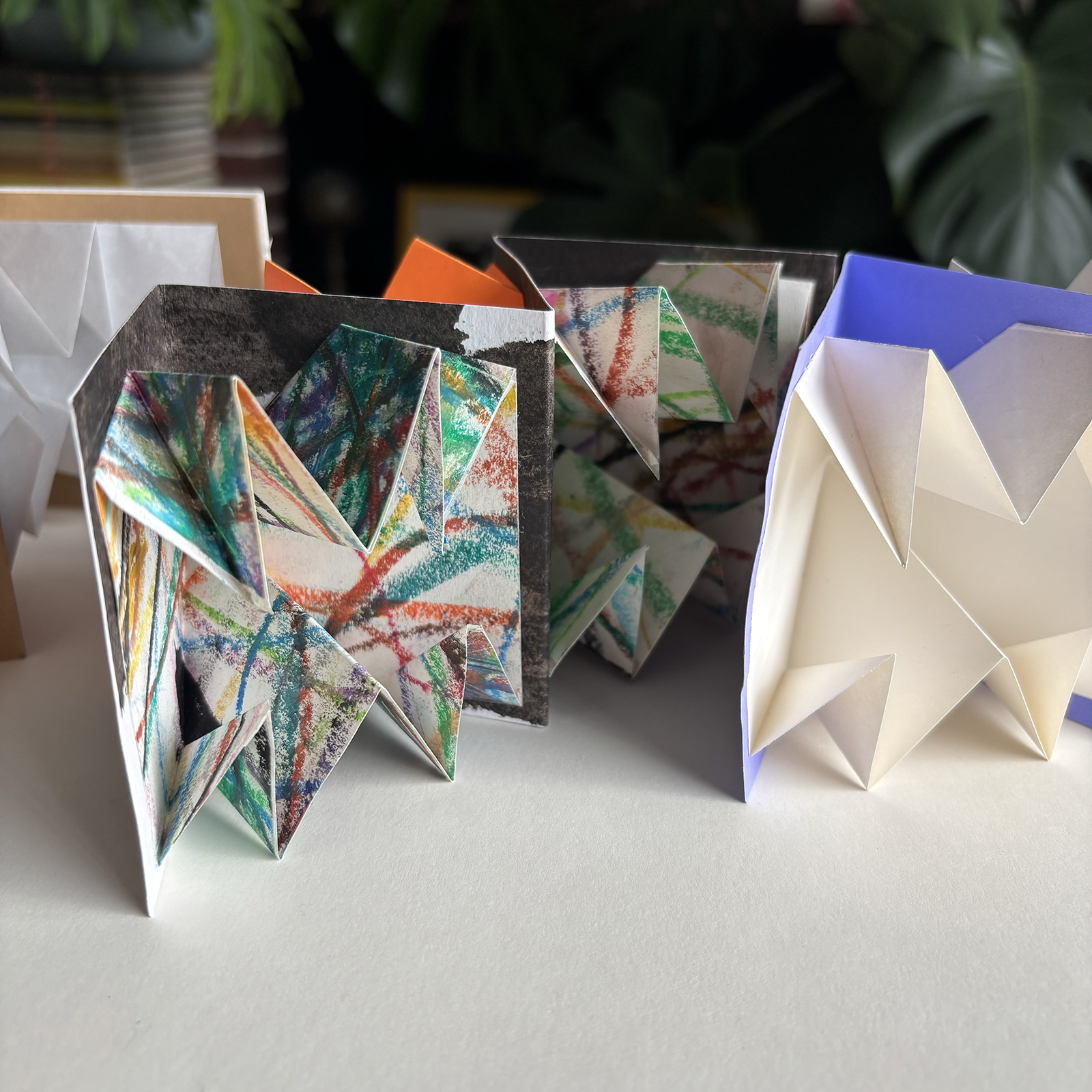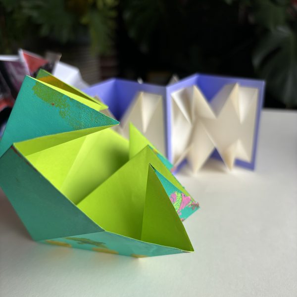 We’ll begin by learning two variations of a Flag book designed by Hedi Kyle. Then move on to the dragon scale binding, a traditional Chinese binding which dates as far back as the Tang Dynasty. Finally, we’ll experiment with the Turkish map fold which also allows for so many fun sculptural applications.