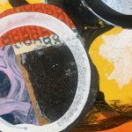 collage on flat wooden panel