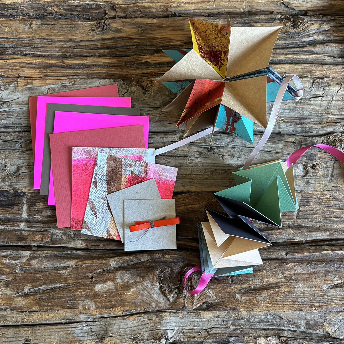 You’ll find pictures in this listing of some examples of completed star books as well as some sample color groupings of papers/ribbon combos you might receive in your kit.