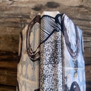 ROOT: something embedded, fundamental, and very connected to the whole. the origin of something; also the foundation. where one thing comes from. a current starting point and a connector to future becoming. what might be found in math, code & trees? in us? For the fabric collection that makes up ROOT, I wanted to use the language already inherent in the fields of mathematics, computing, ecology, and linguistics to draw my way into some kind of shared space between the worlds & possibly uncover where they trickle into one another. If the patterns in GLYPHS were pre-language, nestled in between black and white before systems were built, then the ROOT collection is rushing forward with shapes and ideas colliding, with color running wild on the surface.