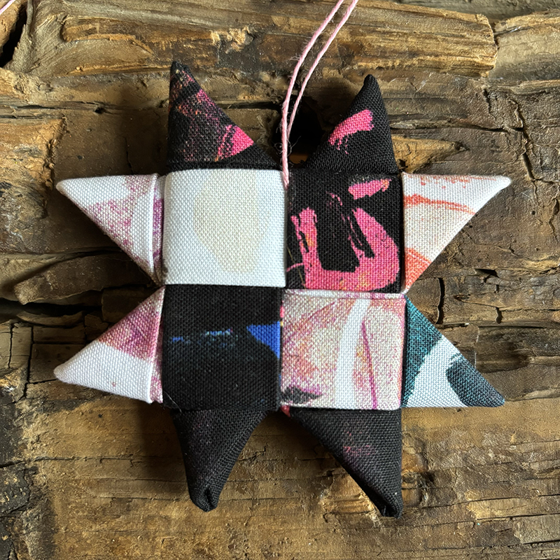 This sweet little star ornament is made by me from fabric from my various collections: GLYPHS, ROOT, RAVEL, LINEAGE, etc…