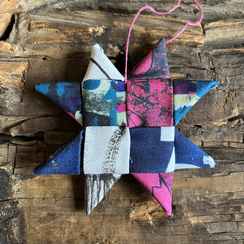 This sweet little star ornament is made by me from fabric from my various collections: GLYPHS, ROOT, RAVEL, LINEAGE, etc…