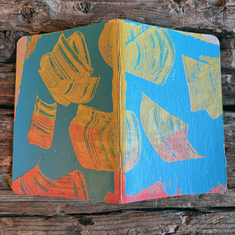 These little guys fit right in your back pocket. Each one is one-of-a-kind, hand printed on gelli plates.