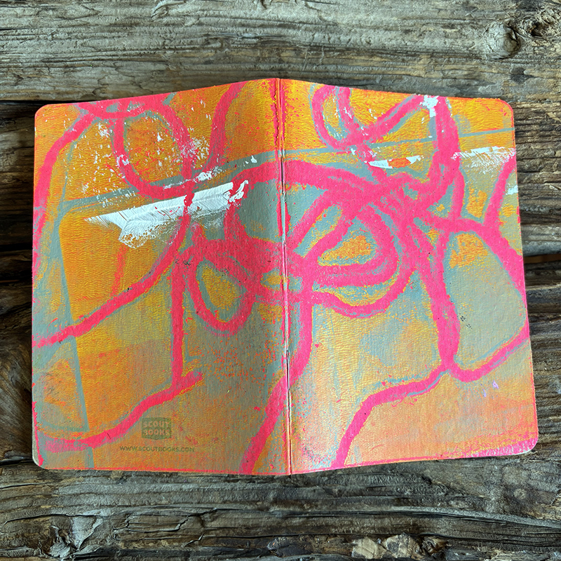 I recently found a set of 50 unused notebooks from Scout Books way back on a shelf in my studio. They have become the perfect blank canvas for my tired brain to release some creative energy.