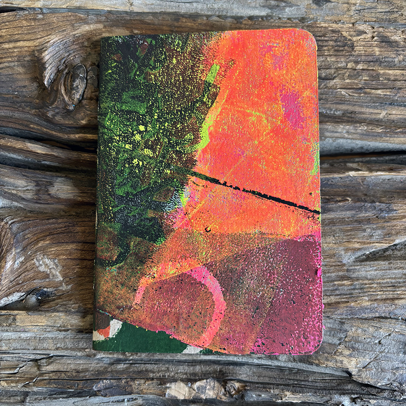 These little guys fit right in your back pocket. Each one is one-of-a-kind, hand printed on gelli plates.