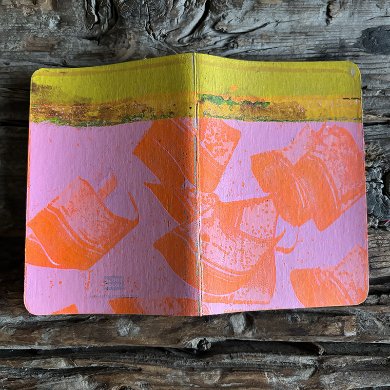 These little guys fit right in your back pocket. Each one is one-of-a-kind, hand printed on gelli plates.